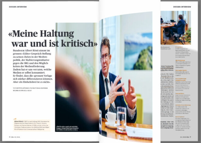 Bundesrat Albert Rösti nimmt im «Edito»-Gespräch Stellung zu seinen Zielen in der Medienpolitik, der Halbierungsinitiative und den Möglichkeiten der Medienförderung.